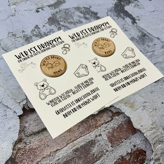 Wer ist dran? | Entscheidungsmünze | Windelmünze | Geschenk | Babyparty